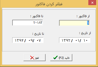 در پنجره نمایش داده شده شما میتوانید بر اساس شماره فاکتور و یا تاریخ فاکتورهای مورد نظر را انتخاب کنید و کلید تایید را بزنید.